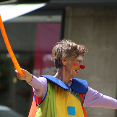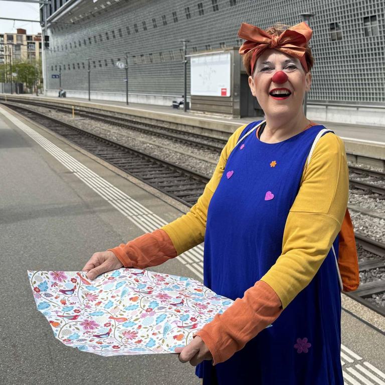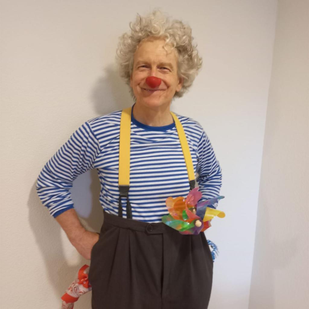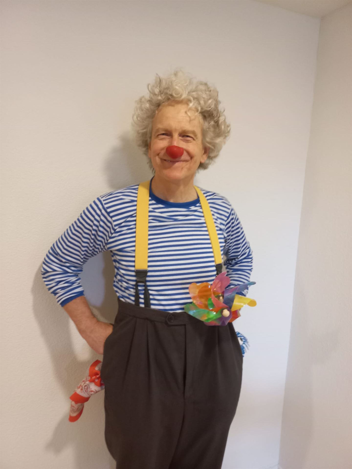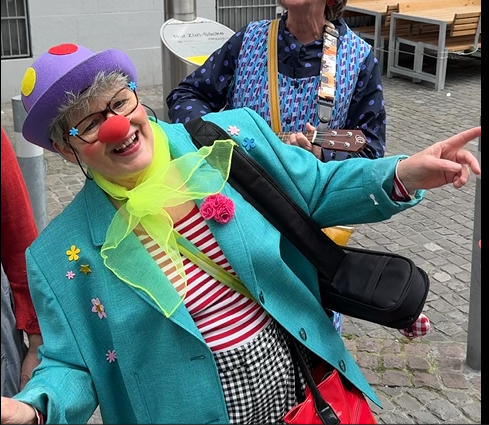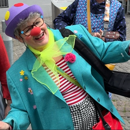 „Mein Wunsch mit verschiedenen Clowns zu trainieren, zu vernetzen und Events zu organisieren hat sich erfüllt. Die abwechslungsreiche Kursleitung und die offene, herzliche, wertschätzende Atmosphäre in der Zürcher Clowngruppe finde ich fantastisch. Mein Clown hat Zeit und Raum, um Talente zu entdecken, an Routinen zu feilen und vor allem zu lachen.“